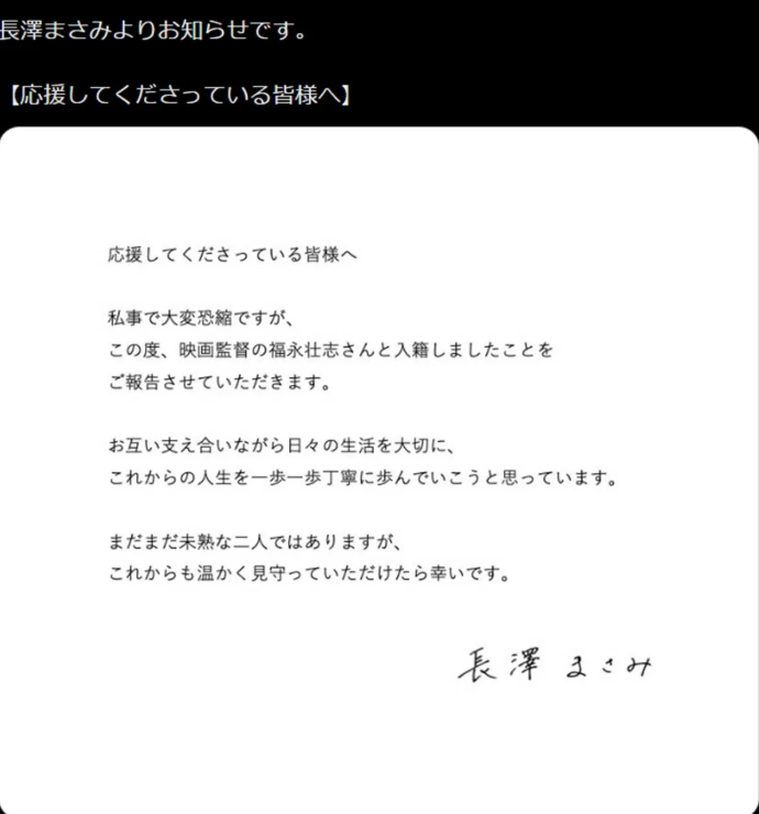 2026年1月1日、長澤まさみさんが映画監督・福永壮志さんとの結婚を発表しました。