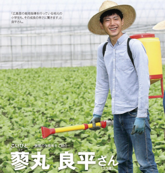 JA広島市 広報誌「こいびと」2016年12月号 (お兄さんである良平さんが、広島菜農家の後継者として紹介されています) https://www.ja-hiroshimashi.or.jp/wp/wp-content/uploads/2016/12/koi01_04-05koibito.pdf