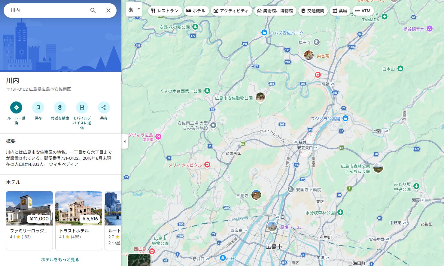 実家の場所は広島市安佐南区の「川内(かわうち)」